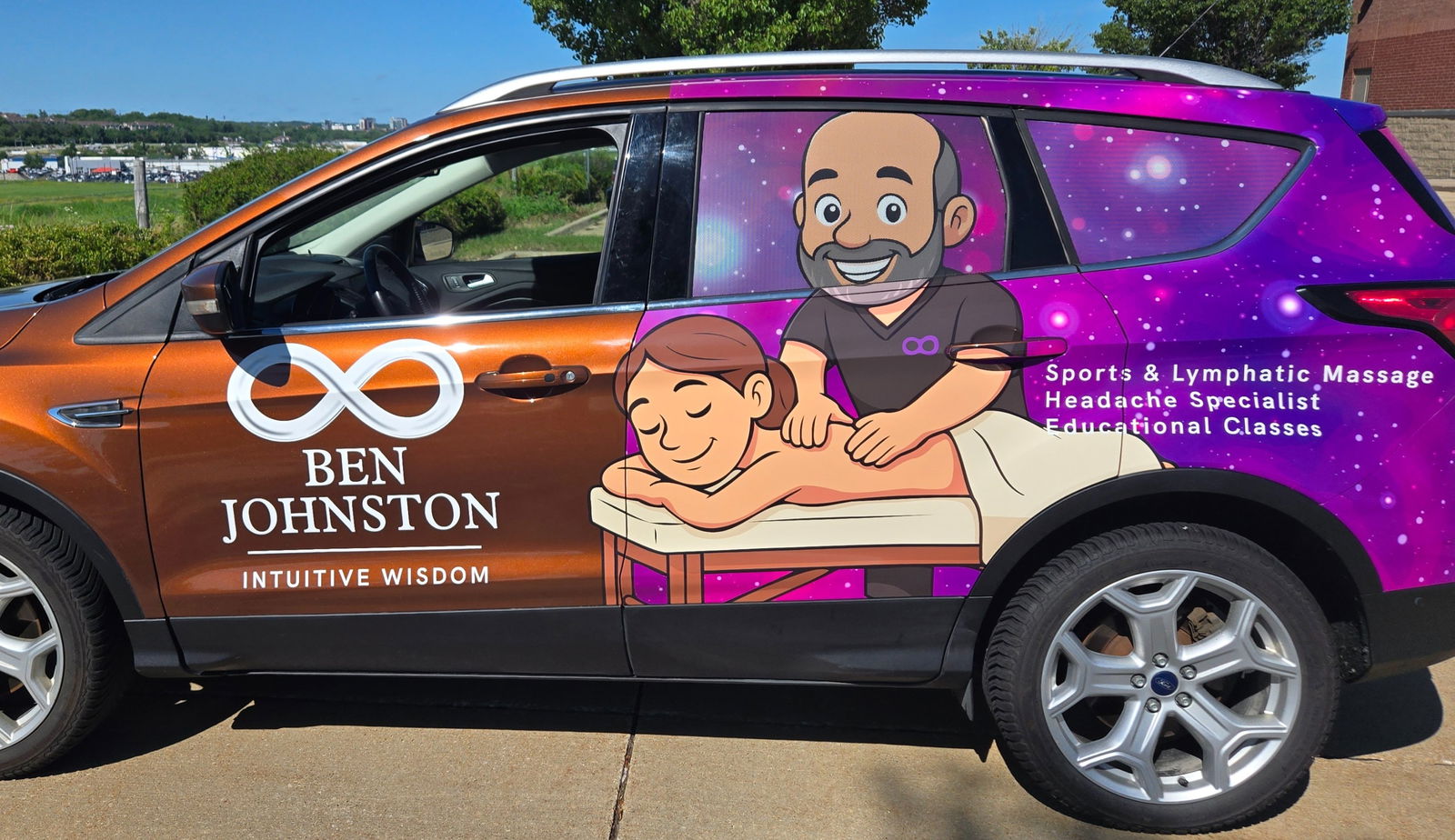You might’ve seen my car around town — with a cartoon version of me on the side. It always makes people smile, and that’s the point. My work goes deep, but it doesn’t have to feel serious or clinical.